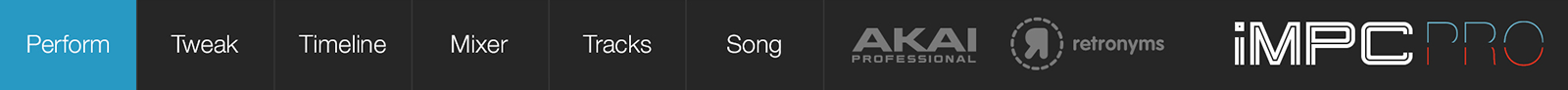 iMPC Pro 2’s interface is broken down into six tabs – Perform, Tweak, Timeline, Mixer, Tracks, and Song – that intuitively organize the core elements of your music. Feel free to play around on each of these sections. You'll learn more about each mode throughout iMPC University.